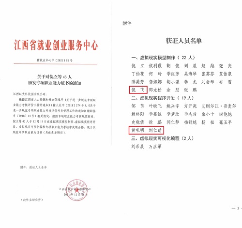 江西省虛擬現(xiàn)實(shí)專項(xiàng)職業(yè)能力證書(shū)考核,也是VR行業(yè)首本人社部門(mén)認(rèn)定的證書(shū)考試,已于2021年12月19日在江西以太科技園有限公司舉辦,考試包括虛擬現(xiàn)實(shí)模型制作、虛擬現(xiàn)實(shí)可視化編程、虛擬現(xiàn)實(shí)程序開(kāi)發(fā)等三個(gè)項(xiàng)目方向,包含理論和上機(jī)考試兩個(gè)部分。