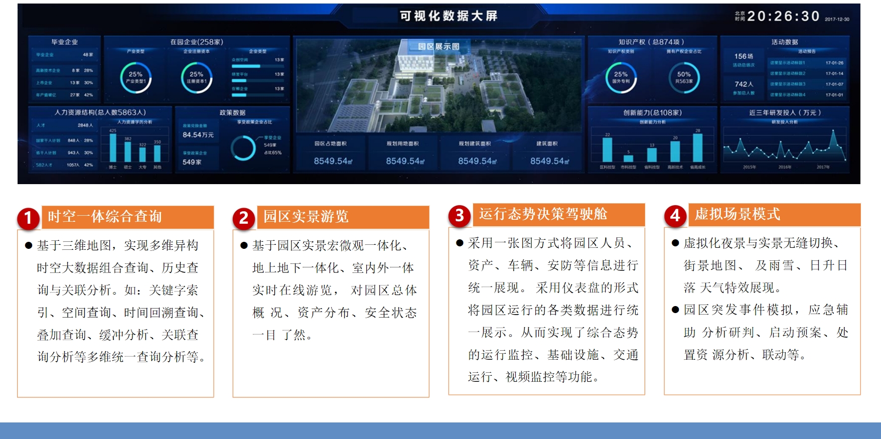 以信息化技術促進園區高質量發展為牽引,以數字化服務為重點,解決園區規劃建設的實際需求和突出難題。構建園區范圍內地上地下、室內外一體化的全空間三維信息模型,集成融合多源異構的園區運行全要素數據,依托三維模型數據、BIM模型、CIM模型、云資源和云計算能力,加強規劃方案比選、規劃成果特效主題應用、仿真模擬、場景展示和可視化,實現全要素數據的二三維深度融合及各類時空信息數據的互聯互通與共建共享,加快形成“全場景便捷參與、全流程科技賦能、全區域泛在互聯、全主體共建共享”的運行模式。